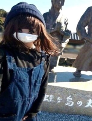 伊豆・蛭ヶ小島・源頼朝と、北条政子の像の前にて(静岡県伊豆の国市)